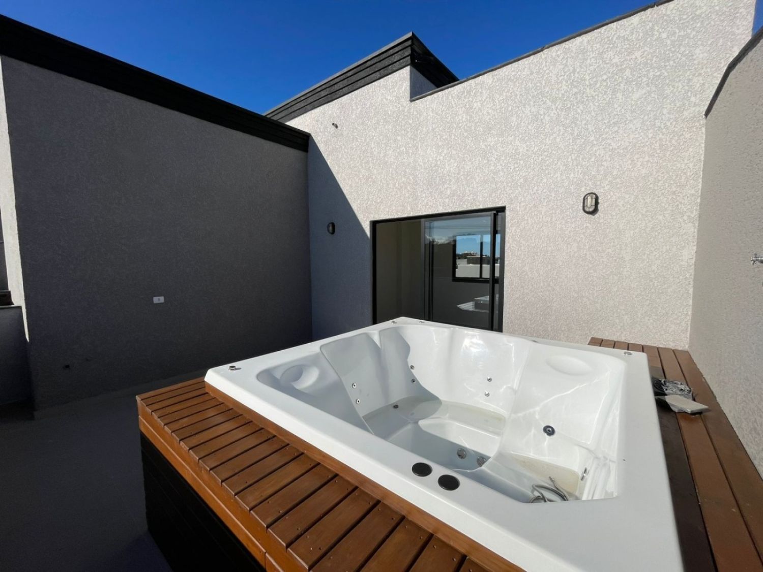 Terraço panorâmico, jacuzzi e área de solarium.