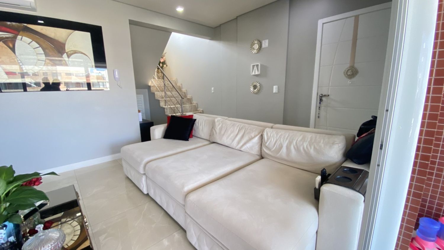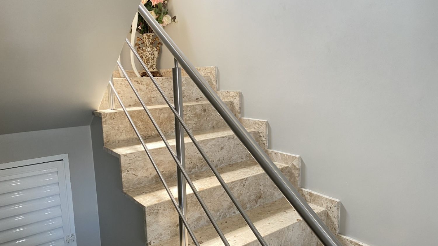 Escada interna em mármore travertino