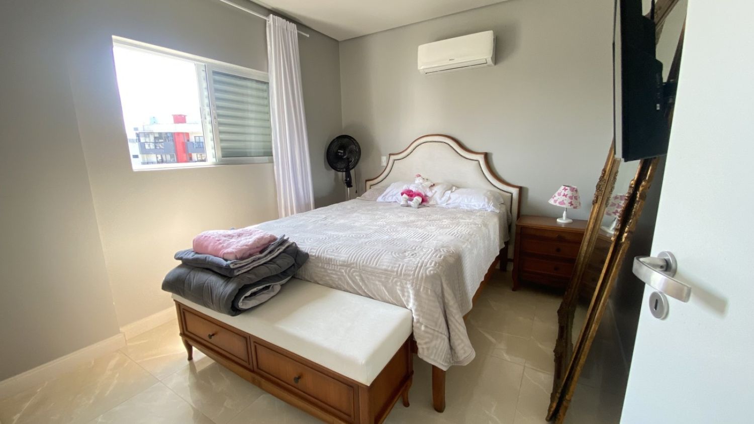 Janelas com venezianas embutidas nos dormitórios