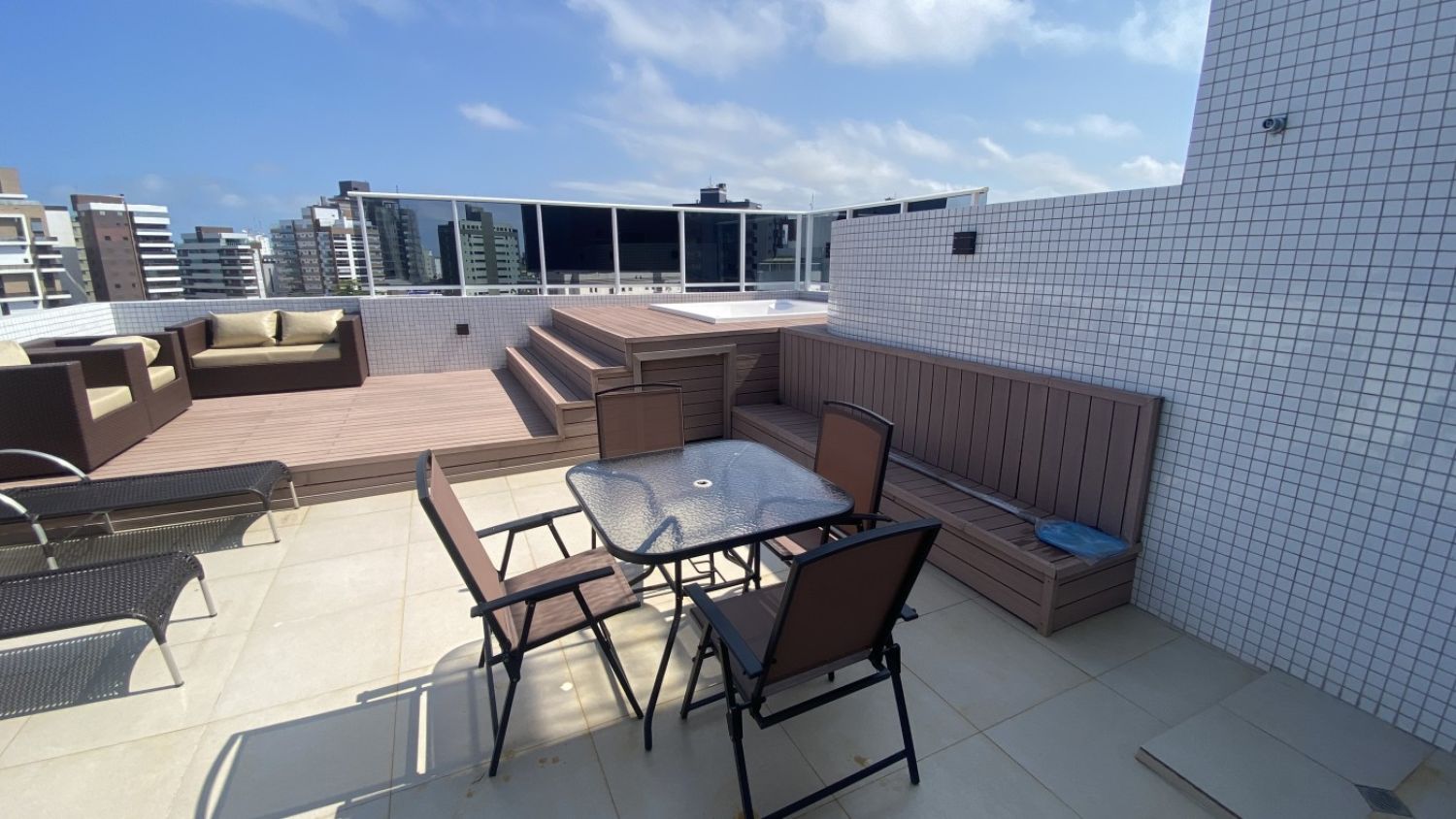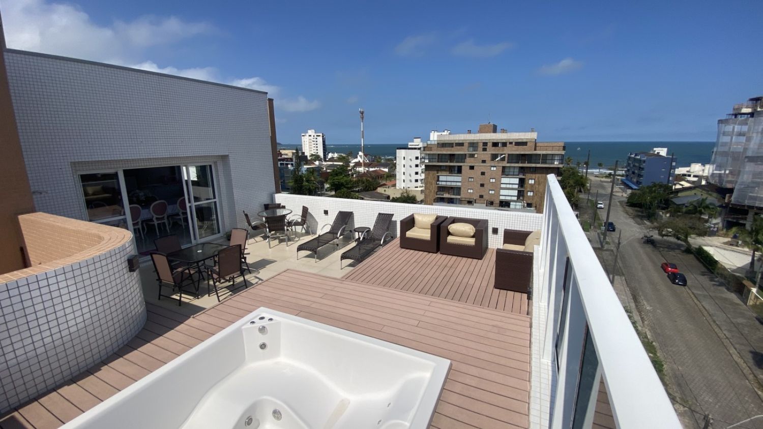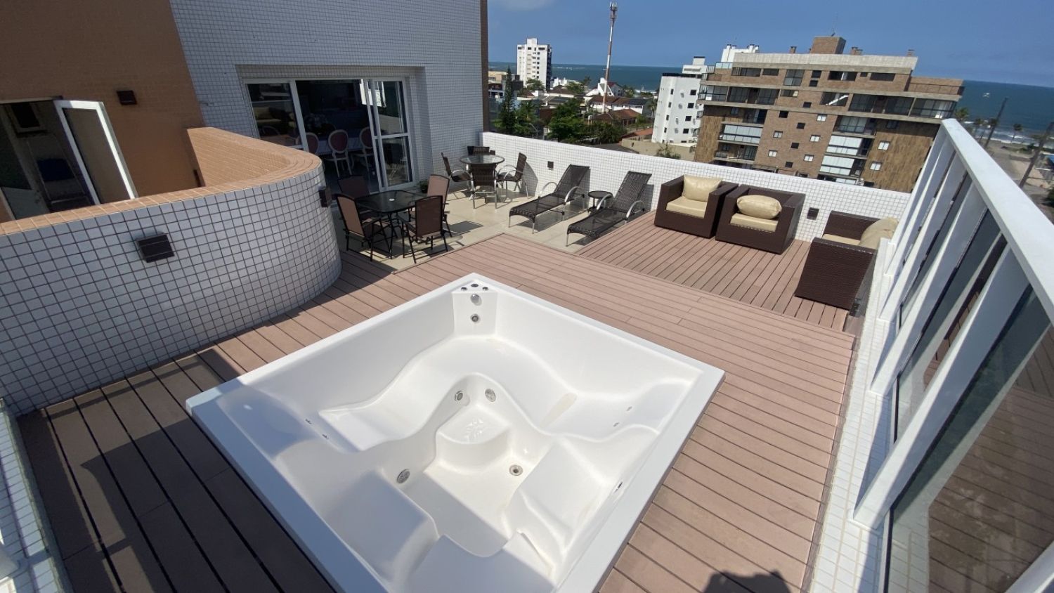 Amplo terraço com Spa privativo, perfeito para relaxar e receber amigos