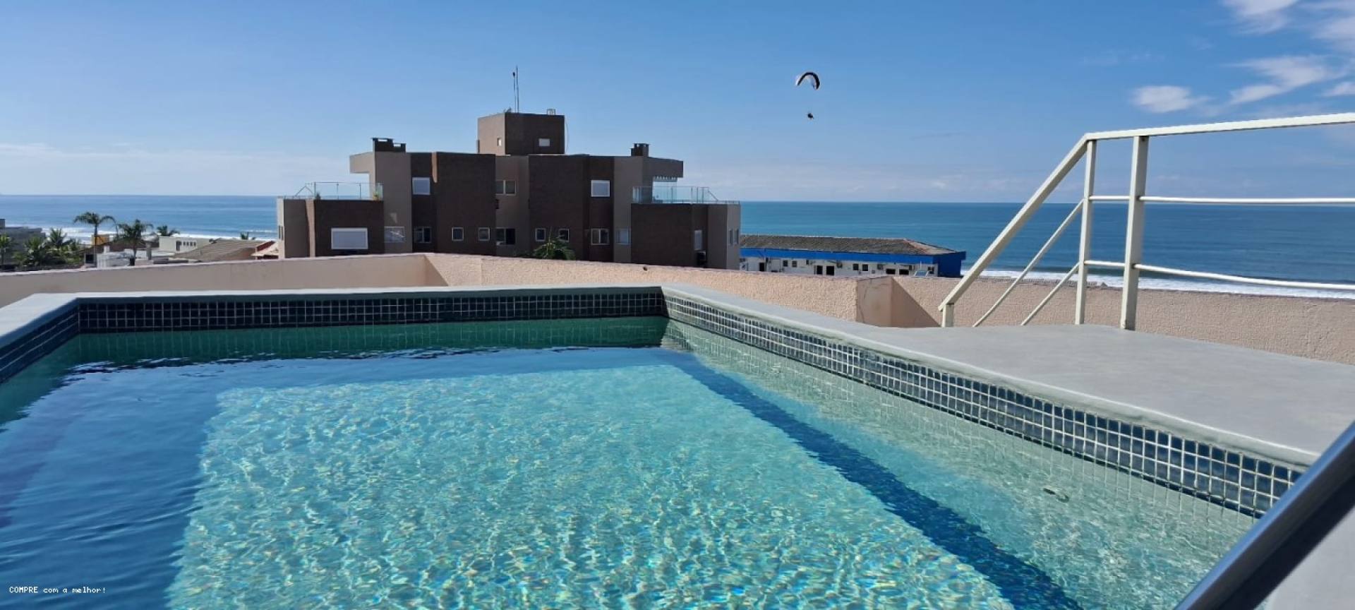 E na cobertura um linda piscina que te permite ver toda a extensão do Balneário de Brejatuba.